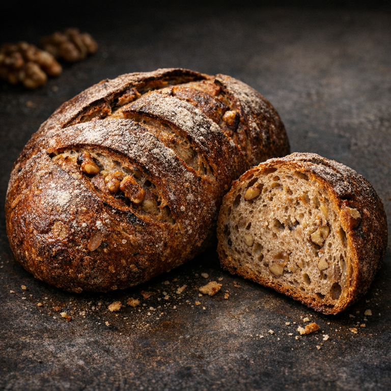 Ein kleines, kerniges Vollkornbrot mit urigem Charakter, nussiger Tiefe und knackigen Walnüssen...