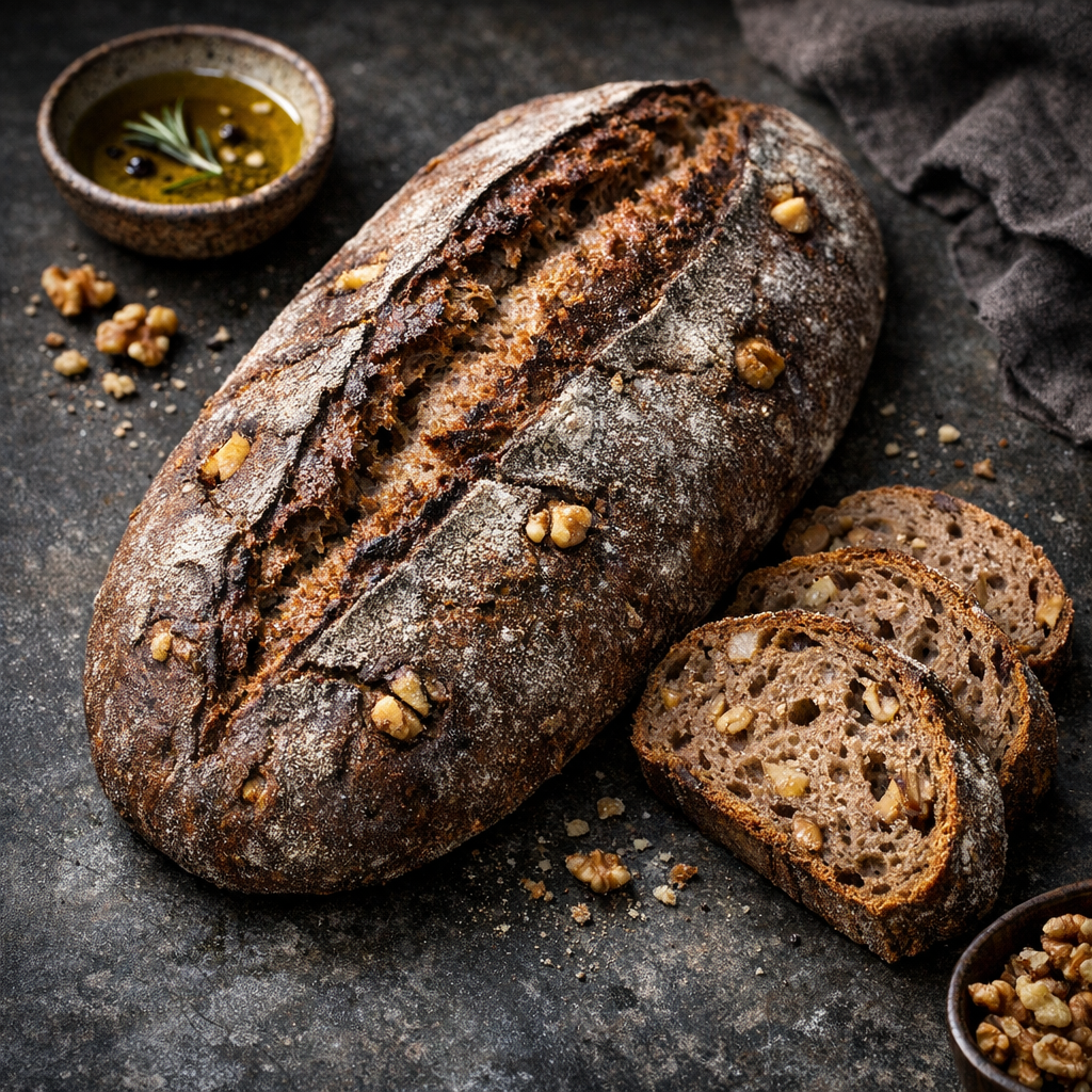 Ein uriges Familien-Roggenbrot mit nussiger Tiefe, saftiger Krume und feiner Veredelung durch Walnüsse und Olivenöl.